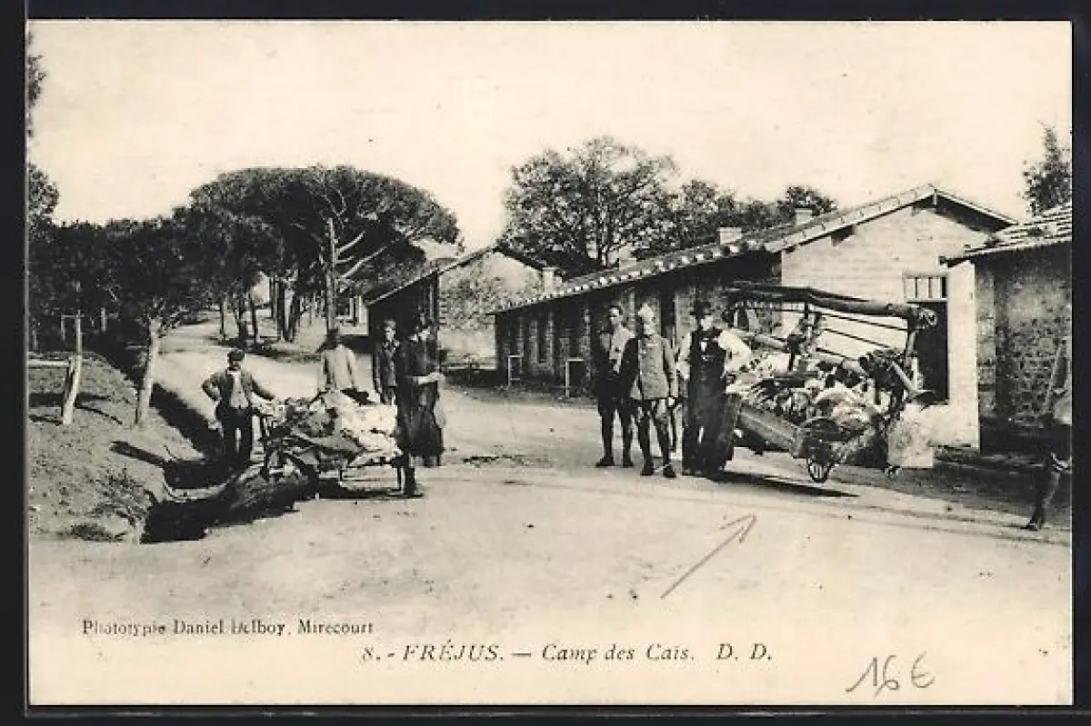 AK Fréjus, Camp des Cais, scène de vie quotidienne dans le camp