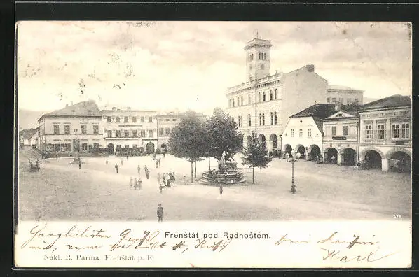 AK Frenstat pod Radhostem, Platz mit Brücke