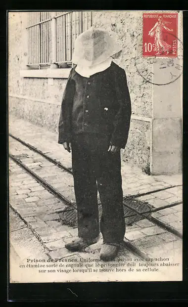 AK Fresnes, Prison, Uniforme de la prison avec cap uchon en étamine sorte de cagoule que le prisonnier