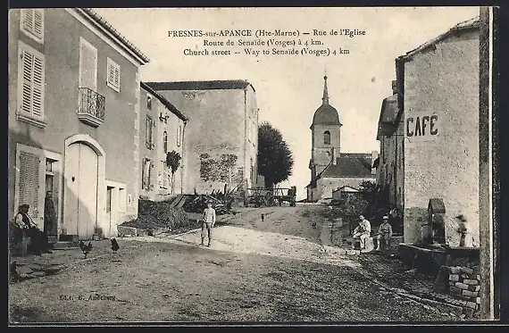 AK Fresnes-sur-Apance /Hte-Marne, Rue de l`Église et vue de l`église au fond