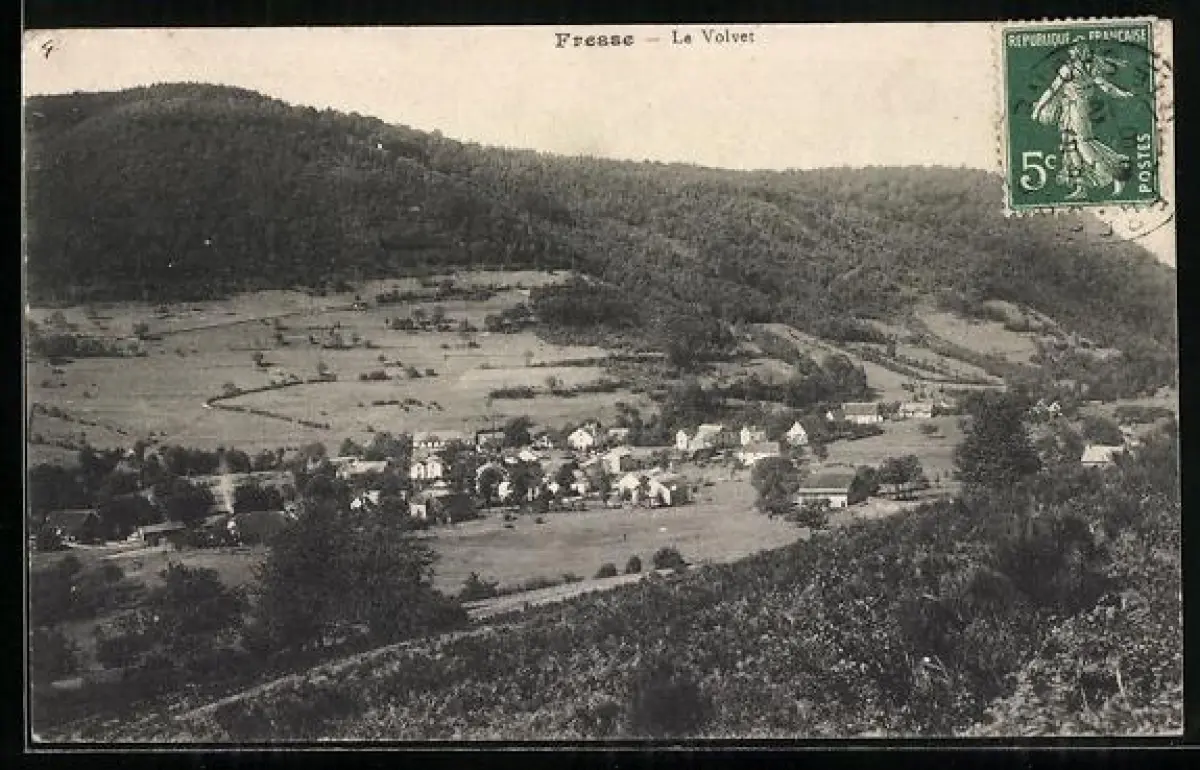 AK Fresse, Le Voivet, Vue du village entouré de collines boisées