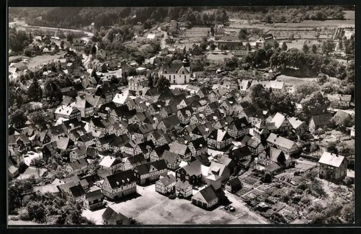 AK Freudenberg /Siegen, Luftbild, Fachwerkhäuser, Kirche