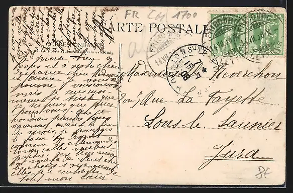 gelaufen 1908, Eckknicke oben, guter Zustand