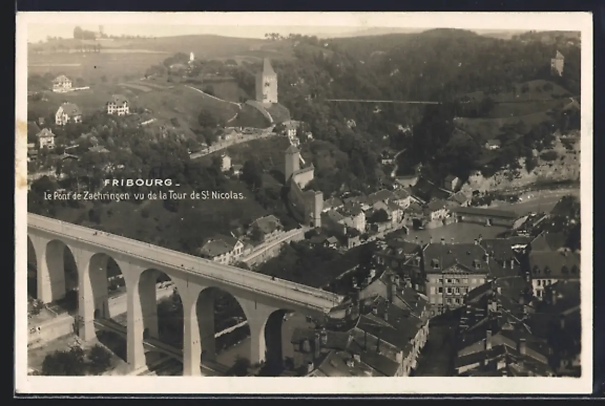AK Fribourg, Le Pont de Zaehringen vu de la Tour de St. Nicolas