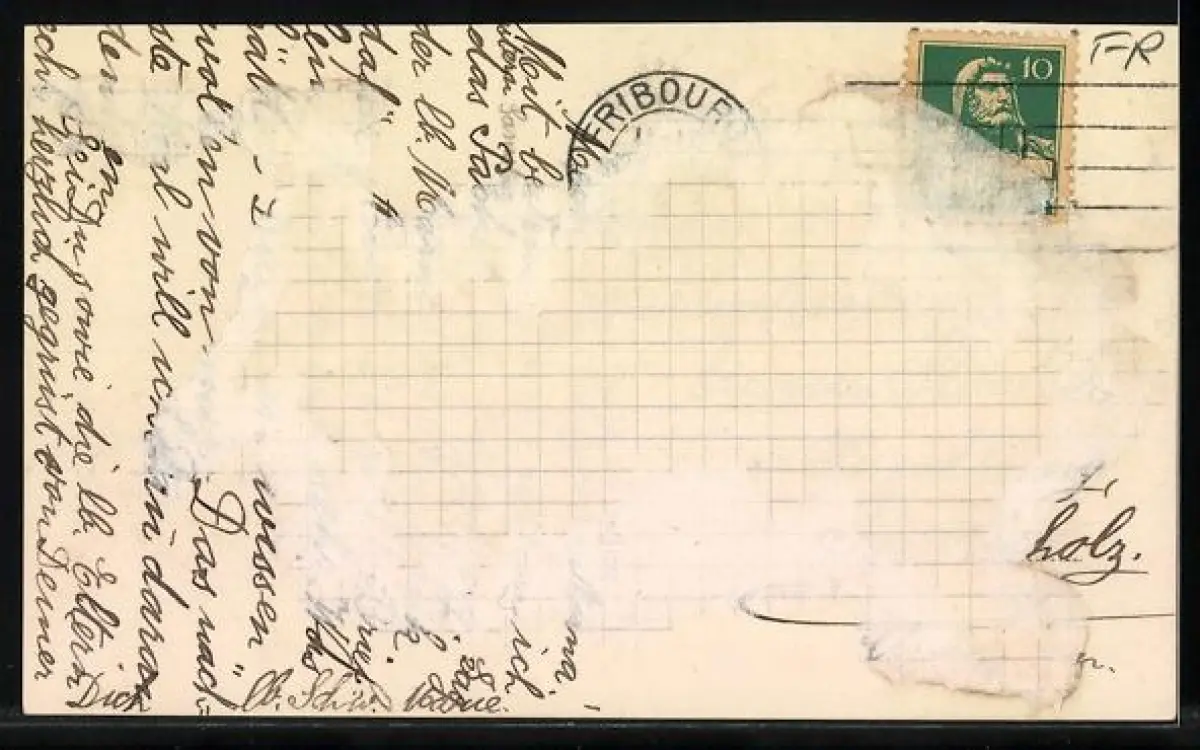 alte Ansichtskarte, gelaufen, rückseitig Klebe- und Papierreste, guter Zustand