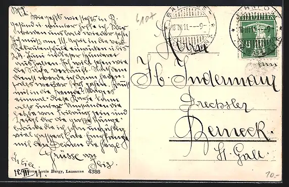 alte Ansichtskarte, gelaufen 1911, Stempelspur, guter Zustand