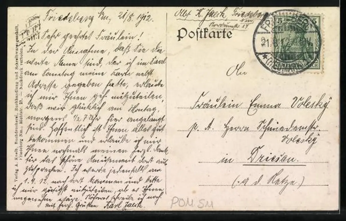 alte Ansichtskarte, gelaufen 1912, guter Zustand