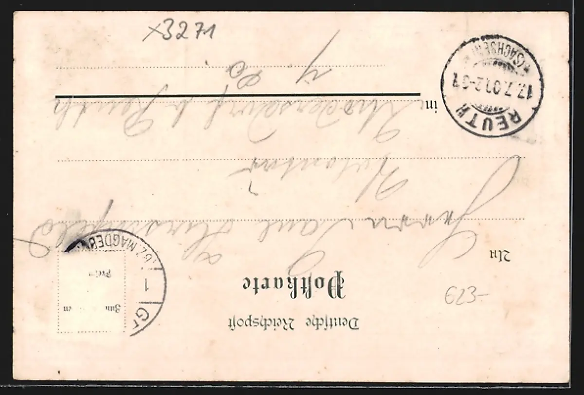 alte Ansichtskarte, gelaufen, Briefmarke entfernt, Stempelspur, guter Zustand