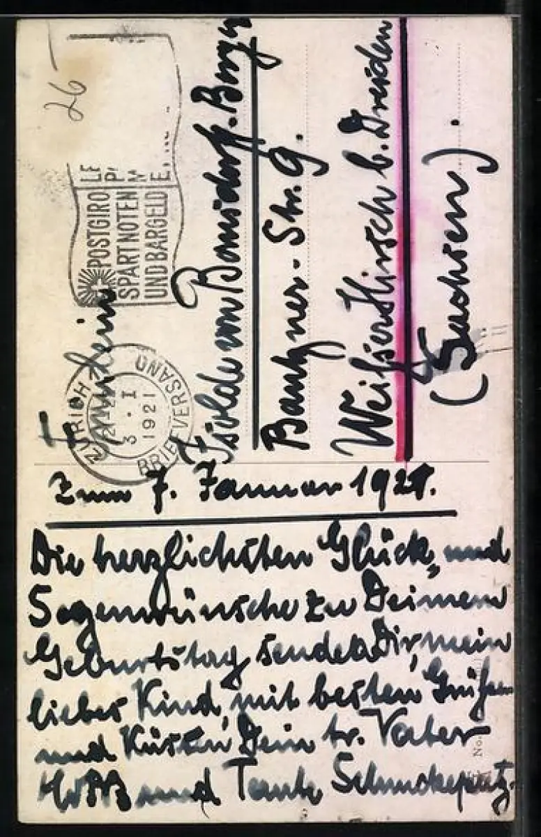 alte Ansichtskarte, gelaufen 1921, Briefmarke entfernt, guter Zustand