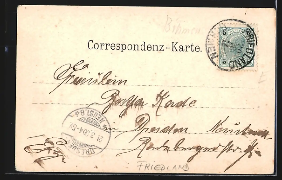 alte Ansichtskarte, gelaufen 1900, Eckknick rechts unten, guter Zustand
