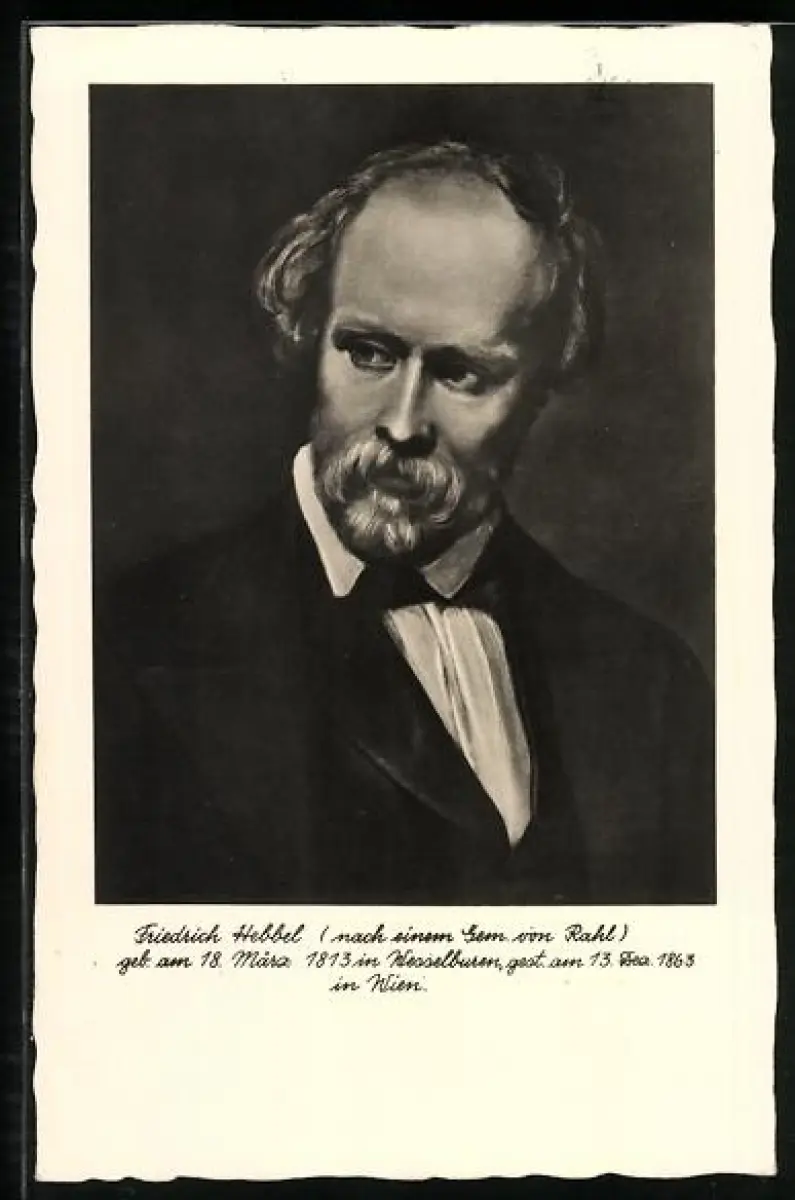 AK Friedrich Hebbel, Porträt im Passeparpout mit Lebensdaten