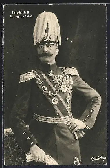 AK Friedrich II. Herzog von Anhalt in Uniform mit Paradehelm