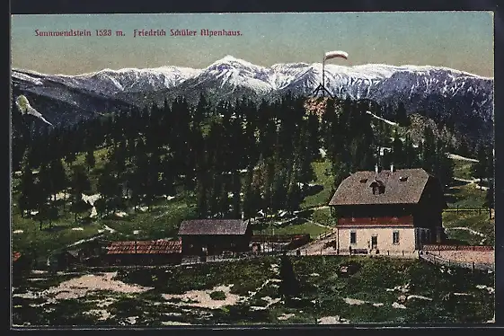 AK Friedrich Schüler Alpenhaus, Ansicht mit Sonnwendstein