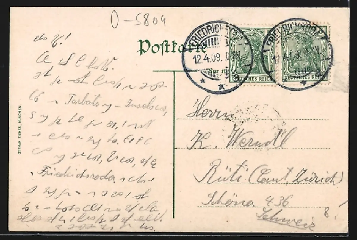 alte Ansichtskarte, gelaufen 1909, guter Zustand