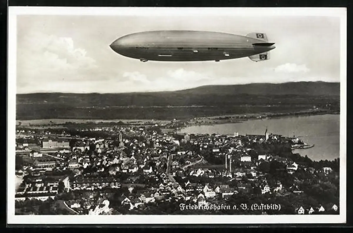 AK Friedrichshafen /Bodensee, Fliegeraufnahme des Zeppelin LZ127 Hindenburg
