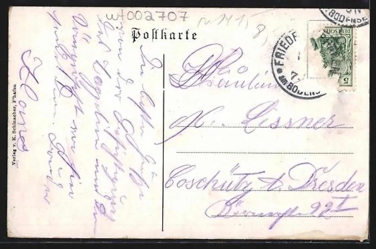 alte Ansichtskarte, gelaufen, Briefmarke entfernt, Eckknick re. unten, guter Zustand