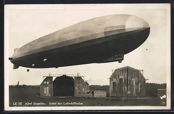 AK Friedrichshafen, Luftschiff LZ 127 Graf Zeppelin über den Luftschiffhallen