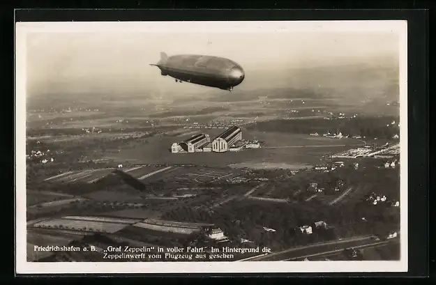 AK Friedrichshafen a. B., Luftschiff Graf Zeppelin über der Zeppelinwerft, Fliegeraufnahme