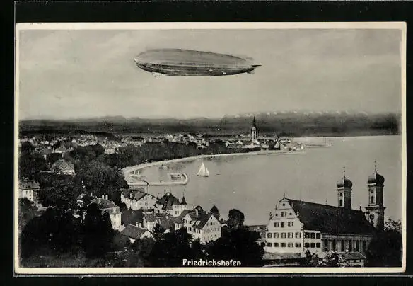 AK Friedrichshafen a. B., Luftschiff LZ 127 Graf Zeppelin über der Stadt