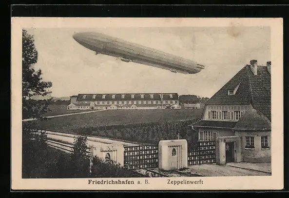 AK Friedrichshafen a. B., Luftschiff über der Zeppelinwerft