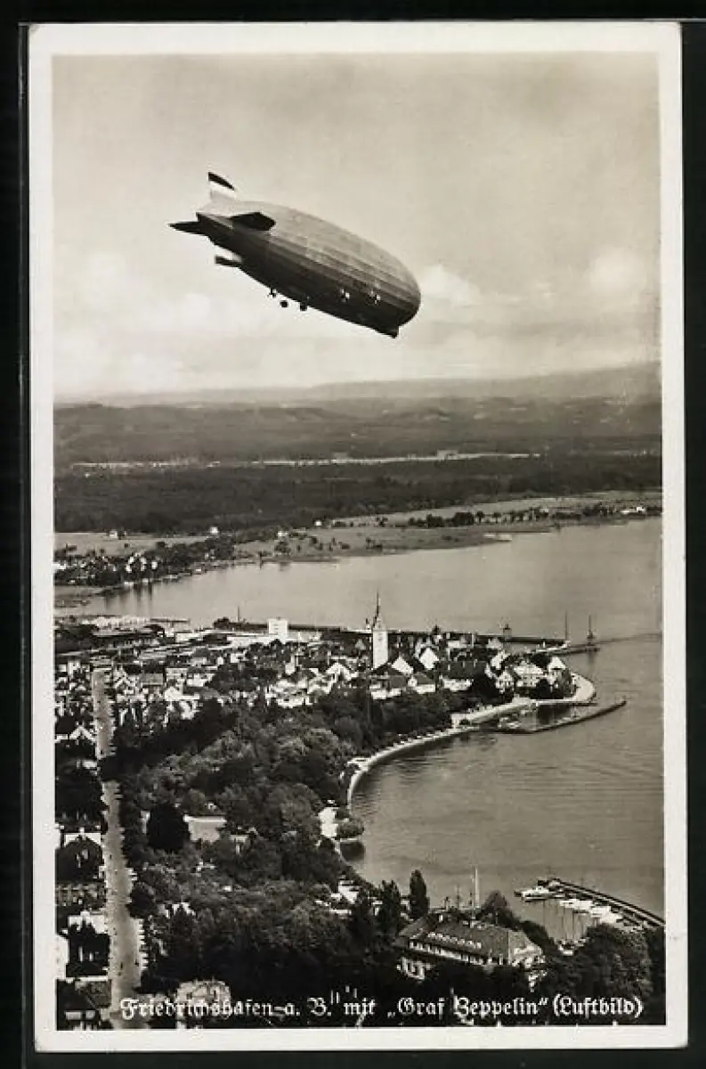 AK Friedrichshafen a. B., Panorama mit Luftschiff LZ 127 Graf Zeppelin