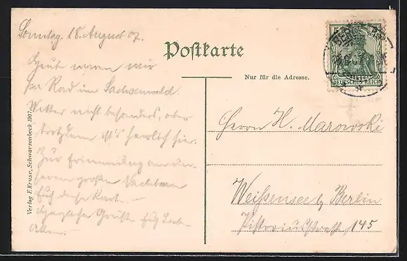 alte Ansichtskarte, gelaufen 1907, guter Zustand