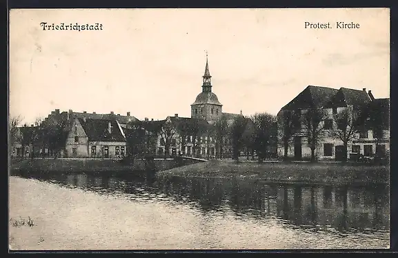 AK Friedrichstadt a. Eider, Blick zur protestantischen Kirche