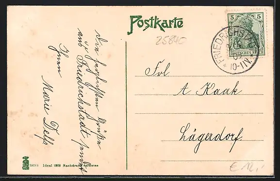 alte Ansichtskarte, gelaufen 1909, guter Zustand