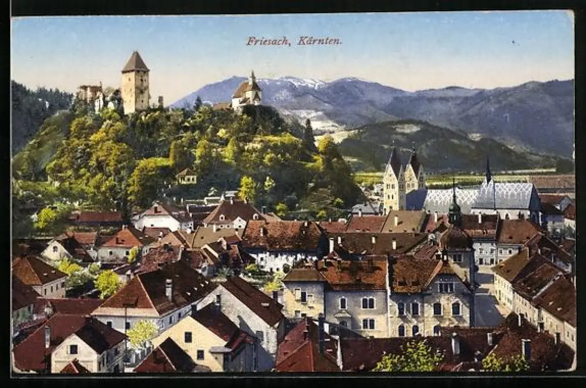 AK Friesach /Kärnten, Ortsansicht aus der Vogelschau