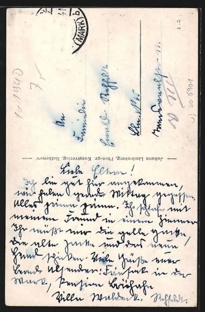 alte Ansichtskarte, gelaufen, Briefmarke entfernt, guter Zustand