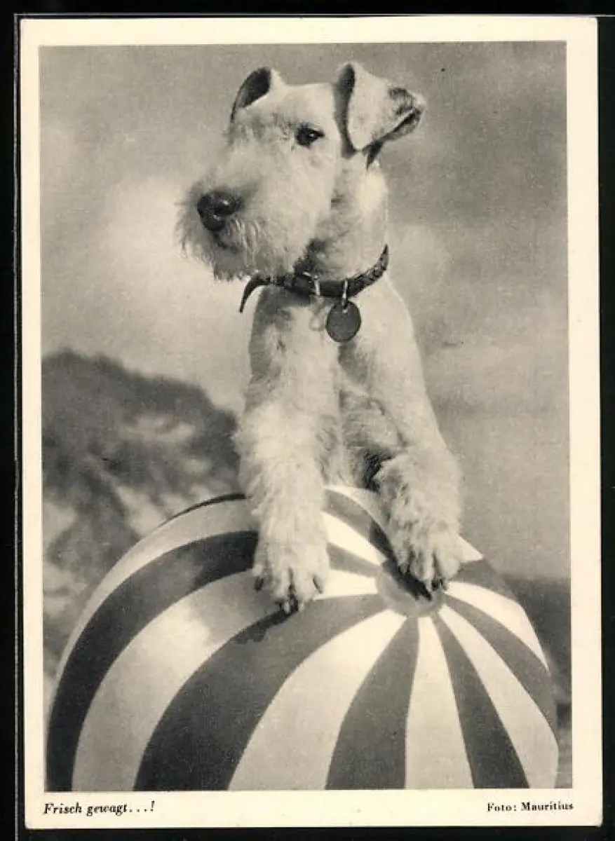 AK Frisch gewagt...!, Terrier mit einem grossen Ball