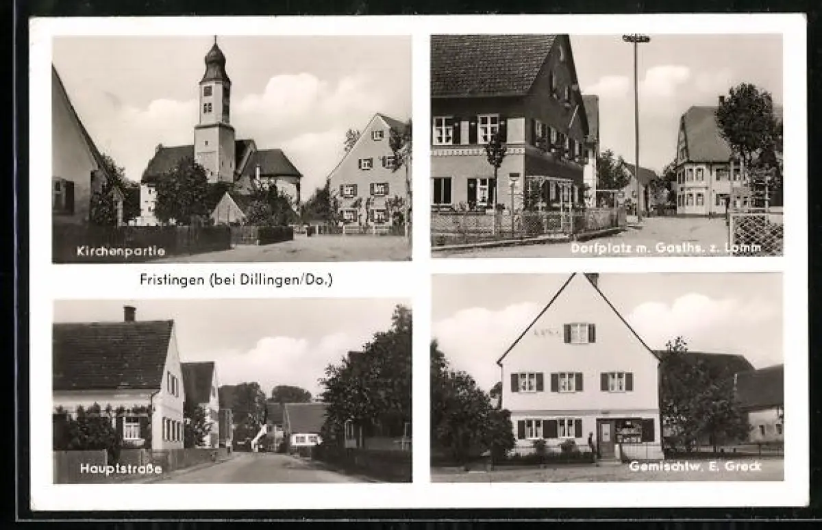 AK Fristingen, Krichenpartie, Hauptstrasse, Dorfplatz mit Gasthaus z. Lamm, Gemischtw. E. Greck