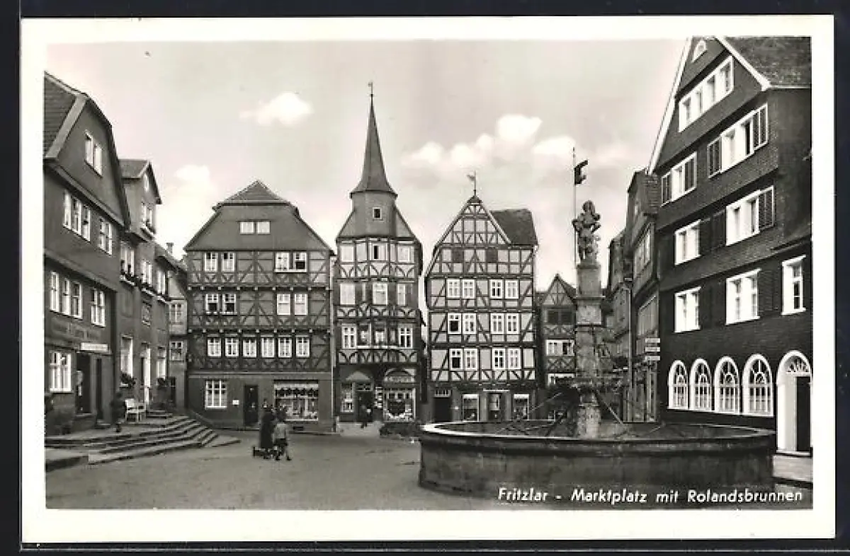 AK Fritzlar, Marktplatz mit Rolandsbrunnen