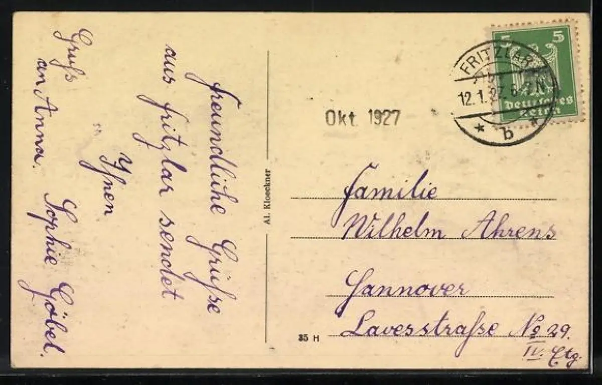alte Ansichtskarte, gelaufen 1927, guter Zustand