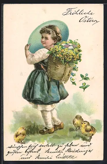 AK Fröhliche Ostern, Mädchen mit Blumenkorb