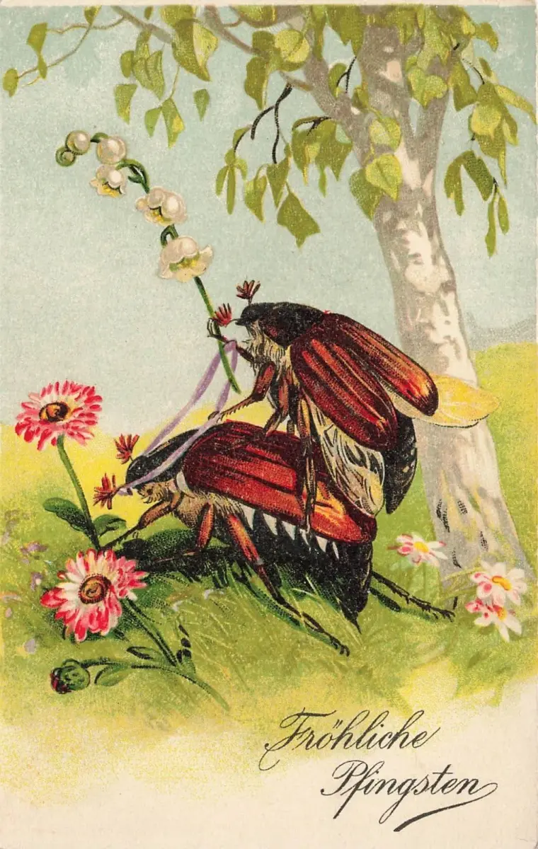 AK Fröhliche Pfingsten Maikäfer Postkarte