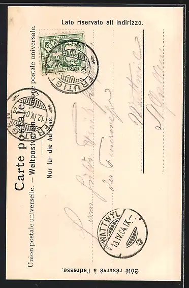 alte Ansichtskarte, gelaufen 1904, Eckknick re. oben, guter Zustand