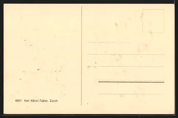 Personenbezogene Daten auf der Rückseite der Karte wurden durch blauen Textmarker unkenntlich gemacht. Die blauen Stellen sind auf die Vorderseite durchgeweicht und wirken sich negativ auf das Postkartenfoto aus