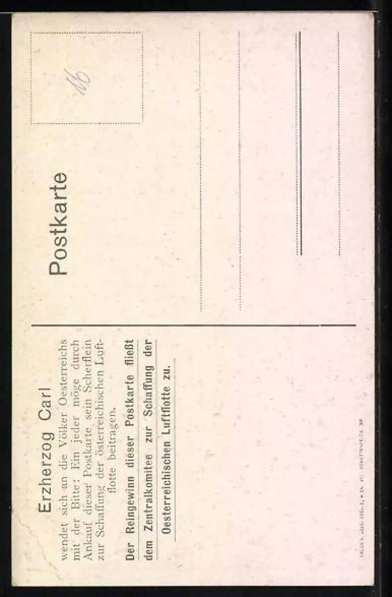 AK Für Österreichs Luftflotte, Viribus Unitis, Flugzeug, Zeppelin, Erzherzog Carl wendet sich an die Völker Österreichs