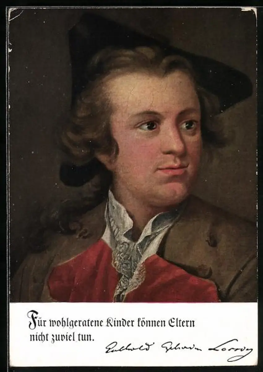 AK Für wohlgeratene Kinder..., Gotthold Ephraim Lessing, Zitat u. Portrait