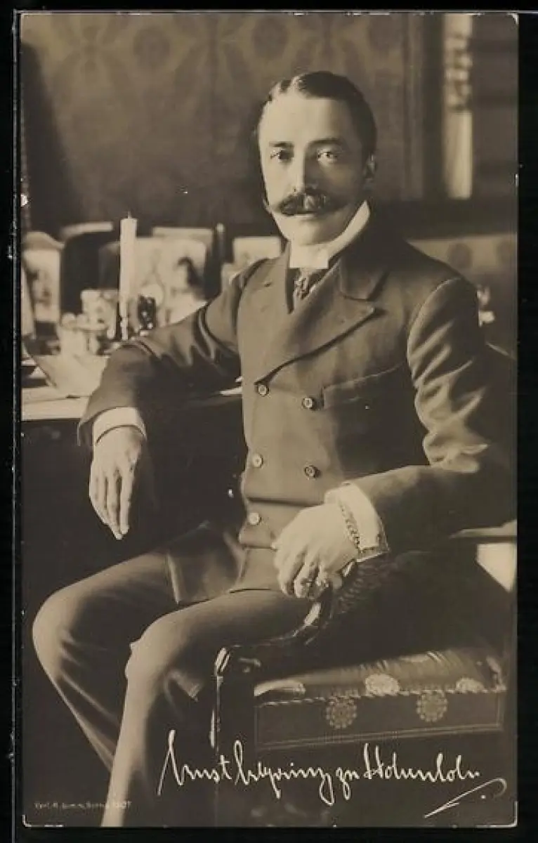 AK Fürst Ernst zu Hohenlohe an seinem Schreibtisch