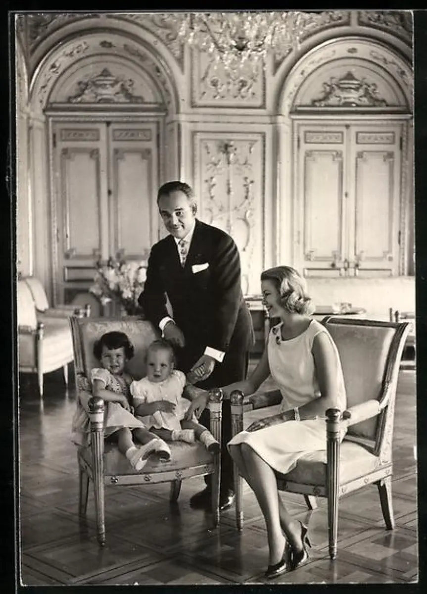 AK Fürstenpaar von Monaco mit seinen zwei kleinen Kindern im Palast
