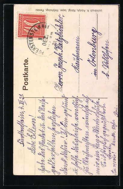 alte Ansichtskarte, gelaufen 1921, Abriebspuren oben re., guter Zustand