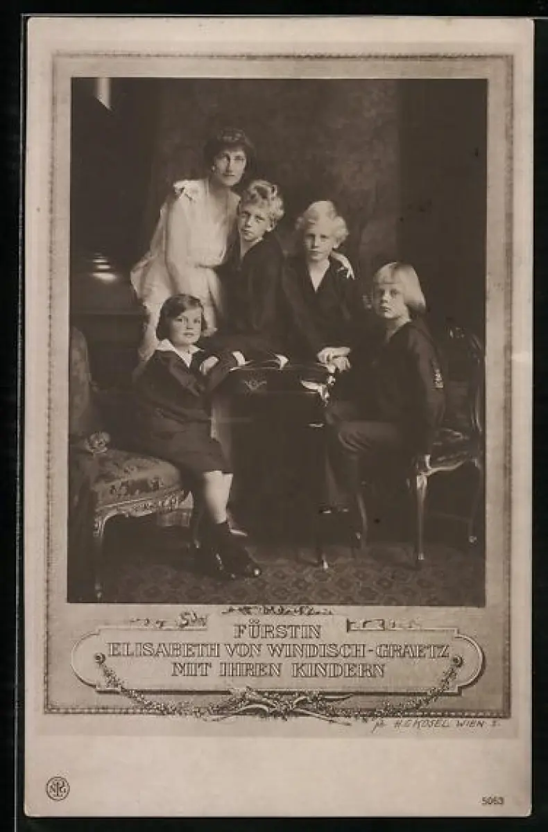 AK Fürstin Elisabeth von Windisch-Graetz mit ihren Kindern, Adel von Österreich