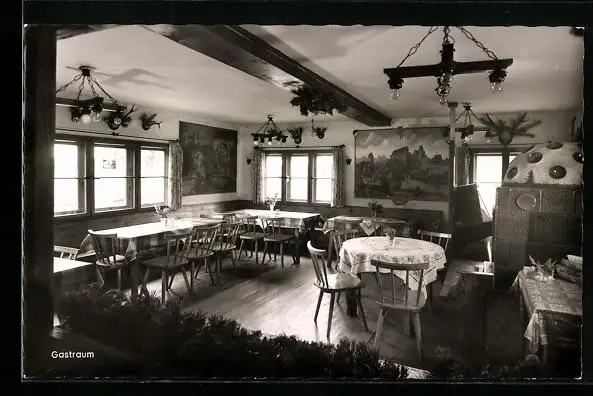 AK Füssen /Allgäu, Gasthaus Cafe Waldwinkel von Jos. Wismath, Kemptenerstr. 121, Gastraum, Innenansicht