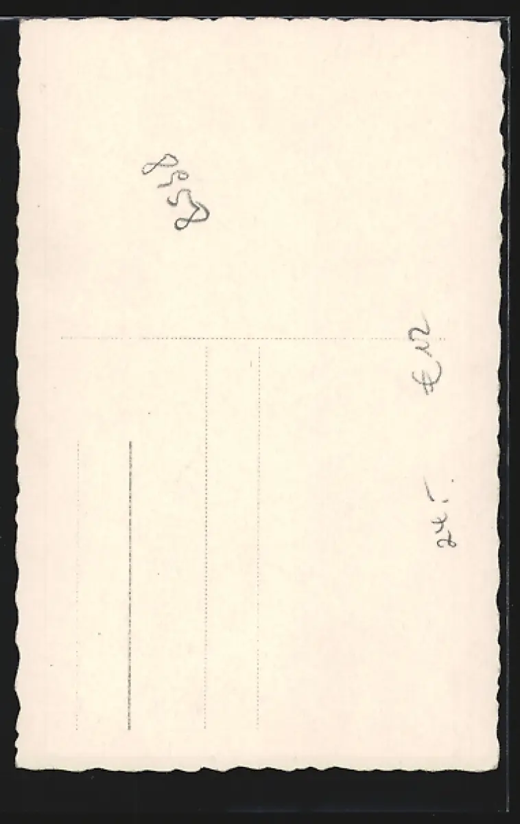 Personenbezogene Daten auf der Rückseite der Karte wurden durch blauen Textmarker unkenntlich gemacht. Die blauen Stellen sind auf die Vorderseite durchgeweicht und wirken sich negativ auf das Postkartenfoto aus