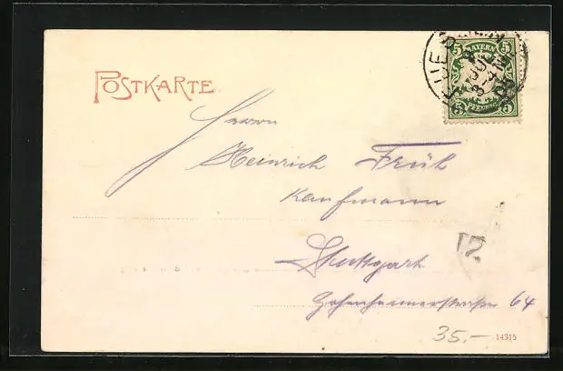 alte Ansichtskarte, gelaufen 1905, guter Zustand