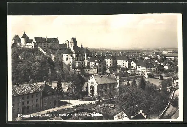 AK Füssen i. bayr. Allgäu, Blick v. d. Hindenburghöhe