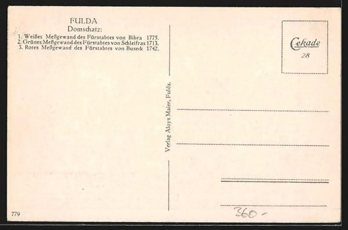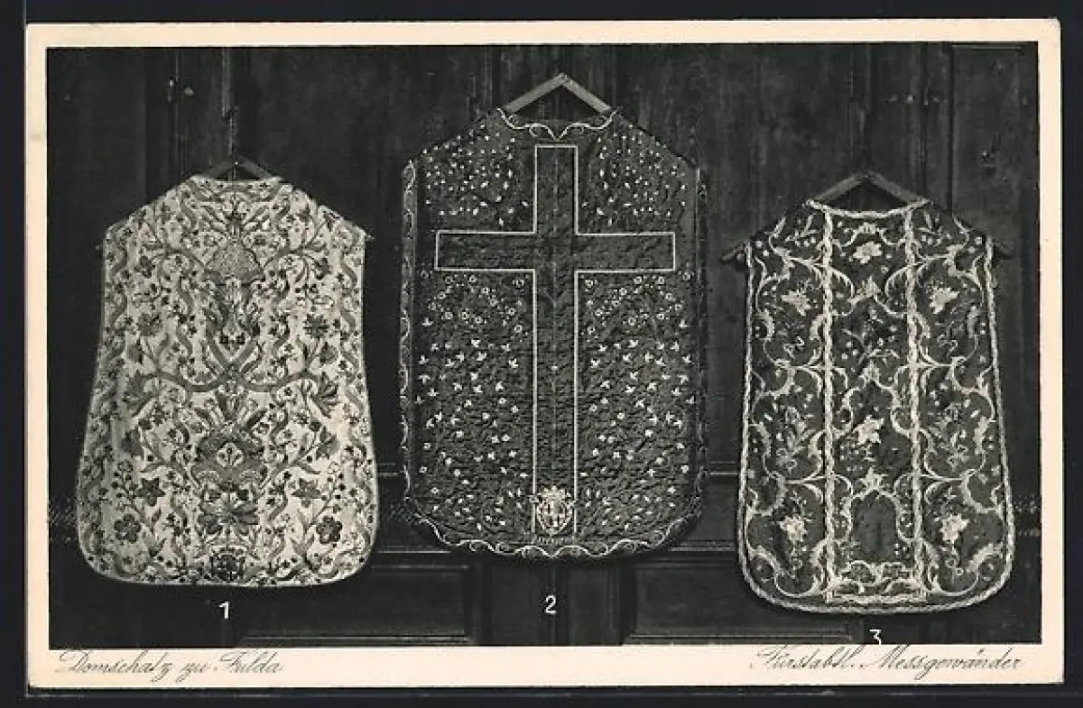 AK Fulda, Domschatz, Messgewänder der Fürstäbte von Bibra, Schleifras und Buseck