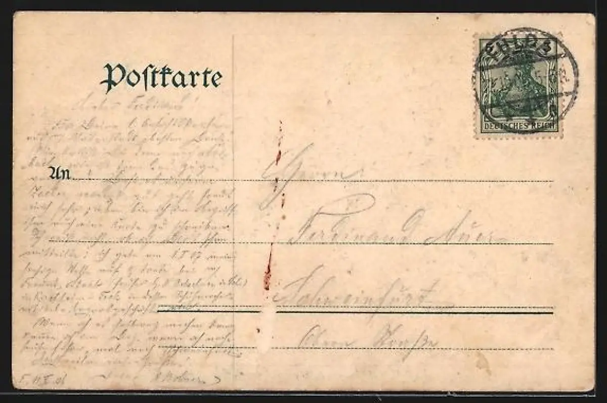 alte Ansichtskarte, gelaufen, rückseitig Oberflächenschaden, guter Zustand